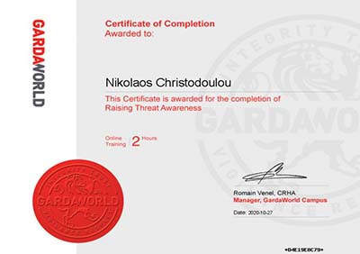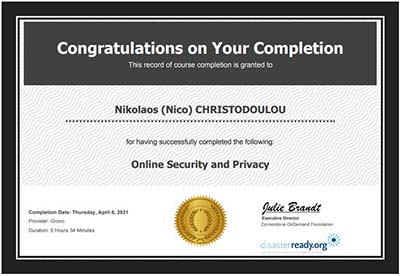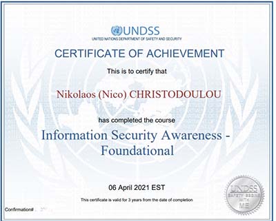 Please note, the most recent Certification or Training Course, is displayed first, on top, and the older ones descending!
